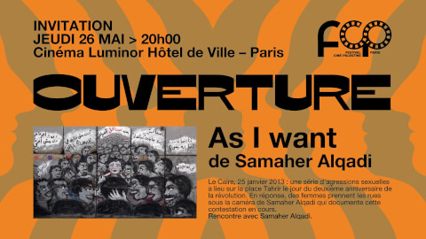 Le Festival Ciné-Palestine fera son ouverture au cinéma Luminor avec As I Want de Samaher Alqadi La projection sera suivie d'une rencontre avec Samaher Alqadi As I Want de Samaher Alqadi France, Norvège, Palestine, Allemagne I 2021 I 88 min I Documentaire Le Caire, 25 janvier 2013 : une série d'agressions sexuelles a lieu sur la place Tahrir le jour du deuxième anniversaire de la révolution. En réponse, des femmes prennent les rues sous la caméra de Samaher Alqadi qui documente cette contestation en cours.